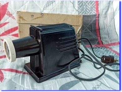 Najstarší detský bakelitový diaprojektor na premietanie kreslených diapásov a rozprávok na kinofilme 35 mm.