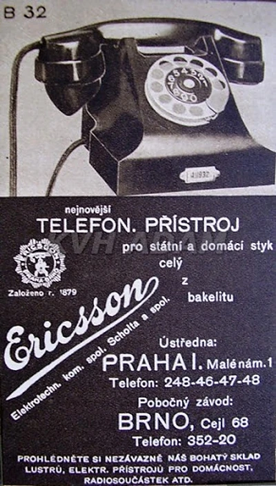 Asi od roku 1932 ich vyrábali postupne pod značkami „Ericsson Praha“ so skeletovým telefónom v logu, po miernej úprave