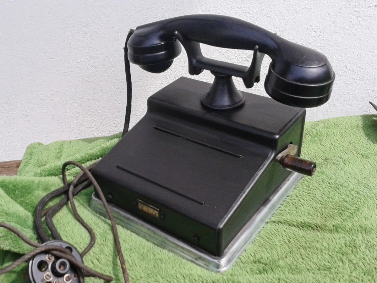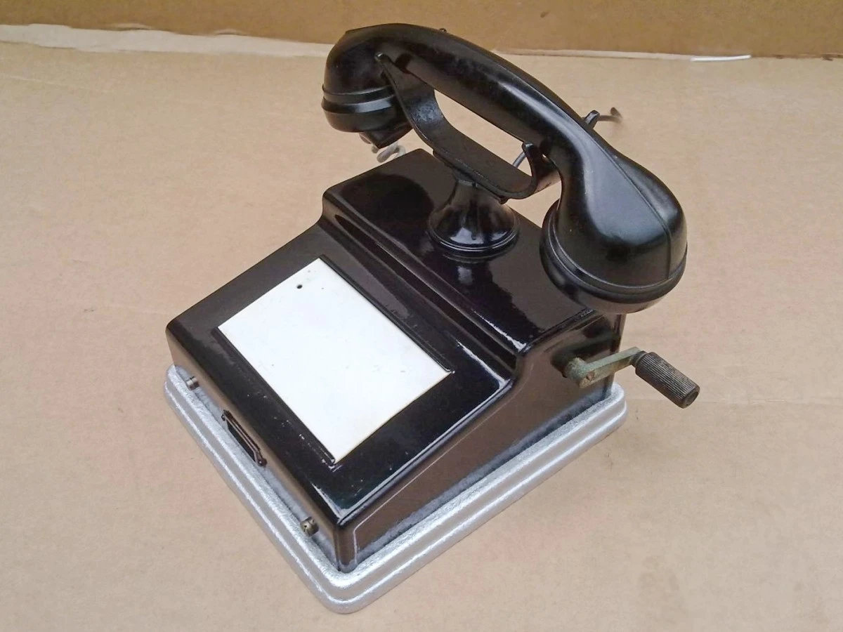 Domáci telefón od firmy „Prchal-Ericsson Praha-Kolín“, asi tridsiate roky 20. storočia