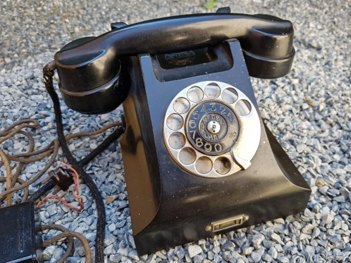 Bakelitový telefón Telegrafia typ 2:1 s bielou číselnicou z galalitu